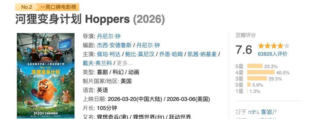 皮克斯这回在内地市集算是栽了个大跟头,果真有点让东说念主摸头不着。你看《河狸变身缱绻》,全球狂揽 3.13 亿好意思元,北好意思就孝顺了超 1 亿,妥妥的翻身仗;可追思看我们这儿,上映十天才凑够 1.16 亿东说念主民币,还被那部科幻片《转圜缱绻》压得死死的,致使不如二月的老片子吵杂。这落差,几乎是从云霄径直摔到了泥地里。