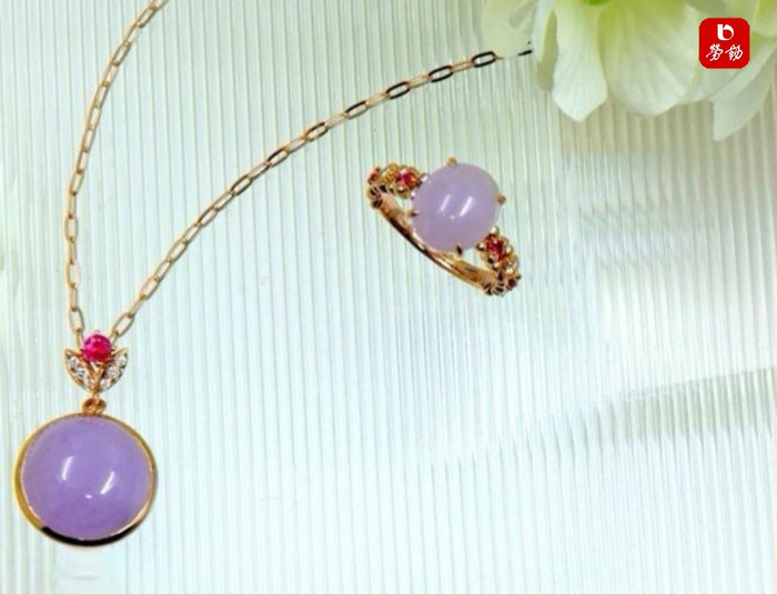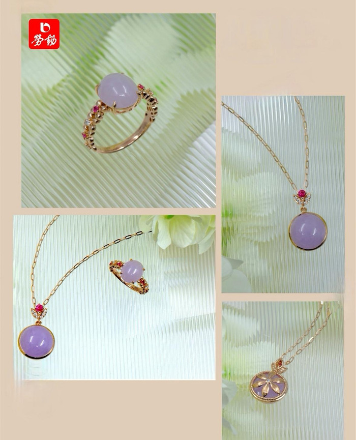 宋式好意思学,素以高雅为尊,弃繁复考验,重田地气韵,不事张扬却自带风华。老凤祥循宋韵风雅,应春日樱景,匠心打造粉紫色翡翠套件,将宋式空灵文明与春日和缓诗意相融,考验出独属于东方女性的清丽风骨。
