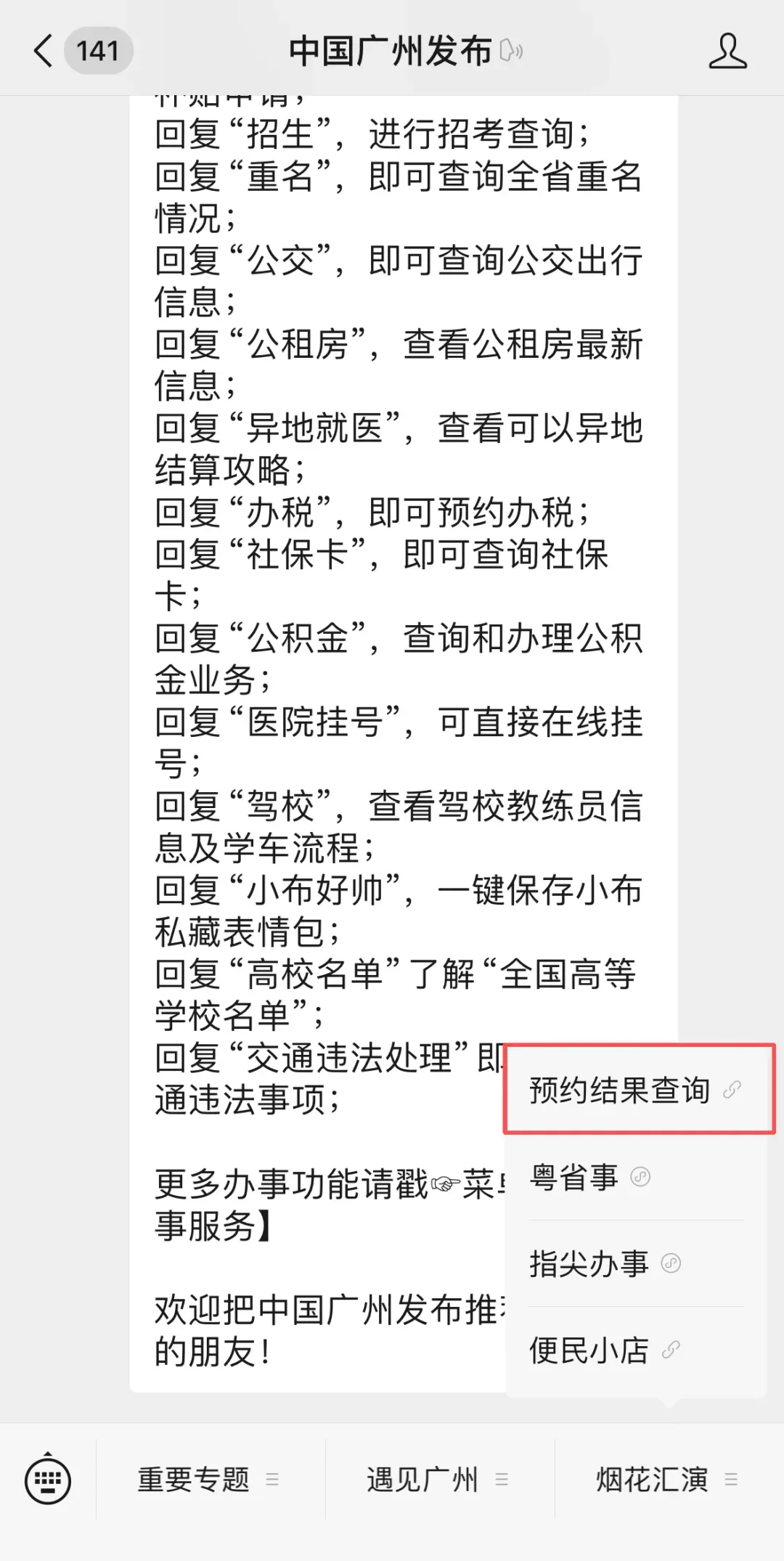 点击【私信】按钮参加聊天对话框,点击菜单栏【烟花汇演】——【预约成果查询】参加查询页面。