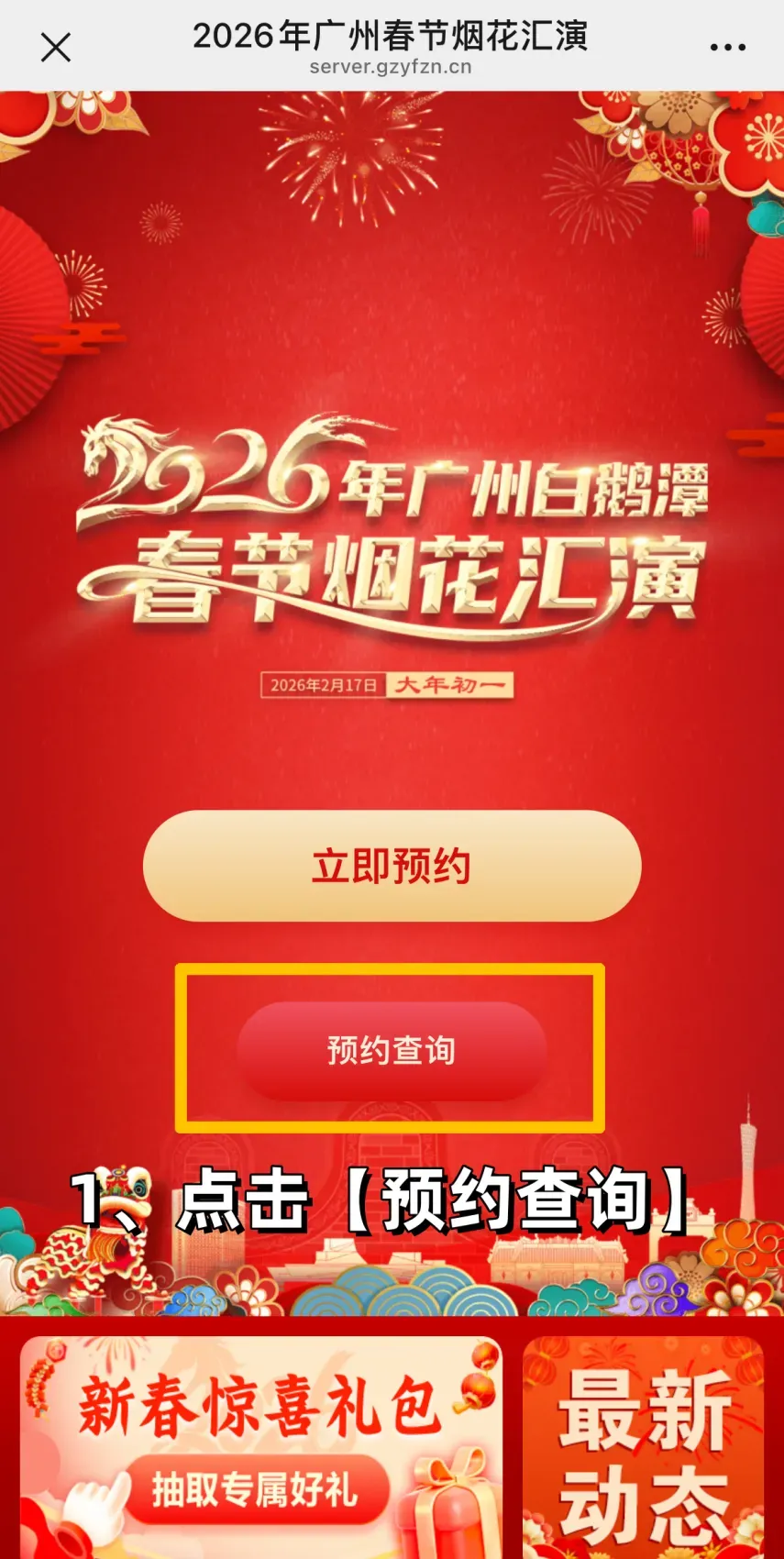 ① 参加界面,点击“预约查询”