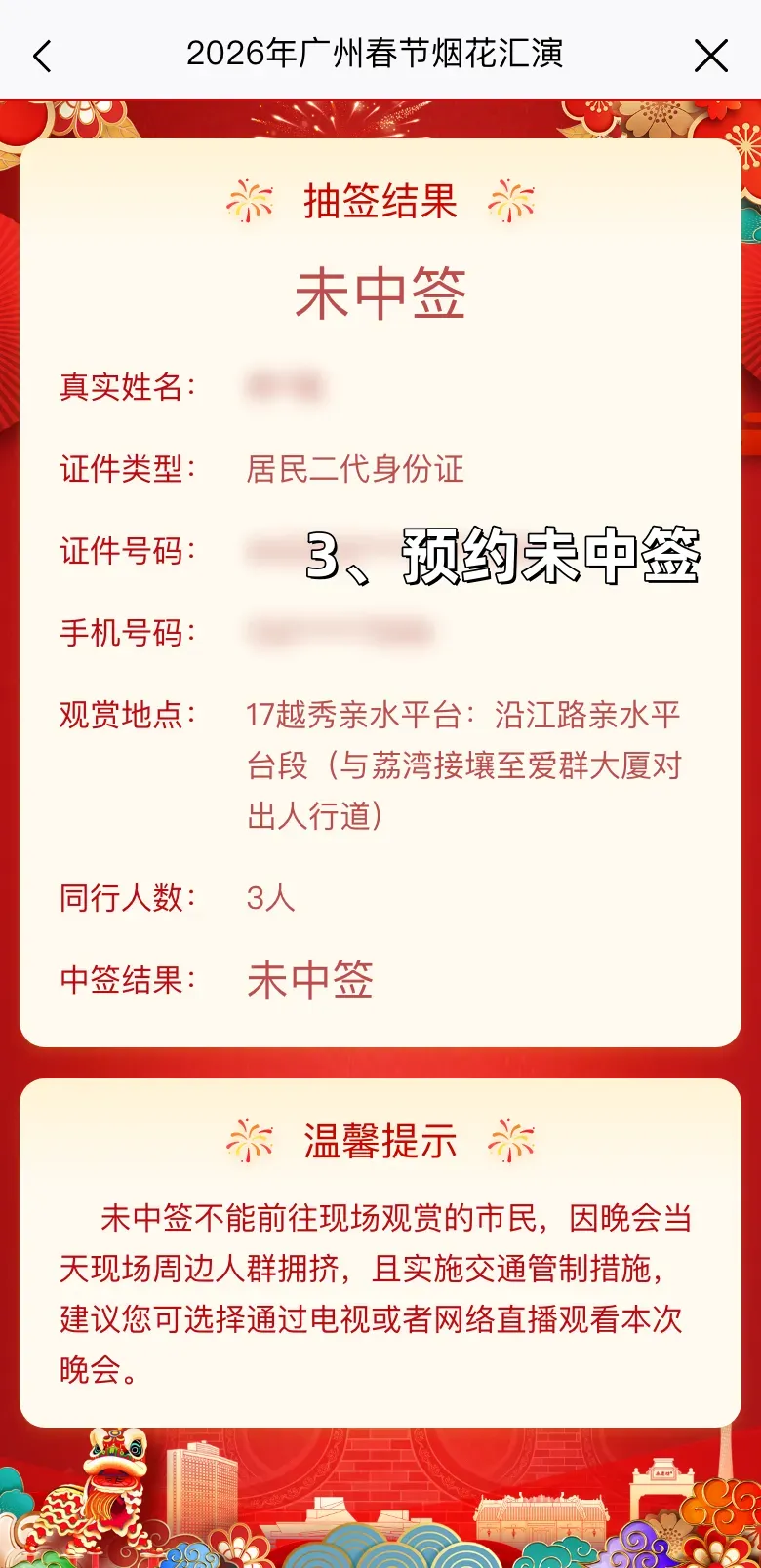 ① 请按照中签信息提前安名次程,按期参加指定不雅赏点。