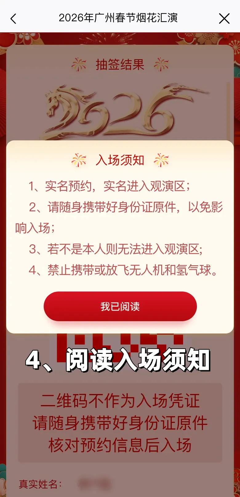 ④ 已中签成果,阅读入场应知