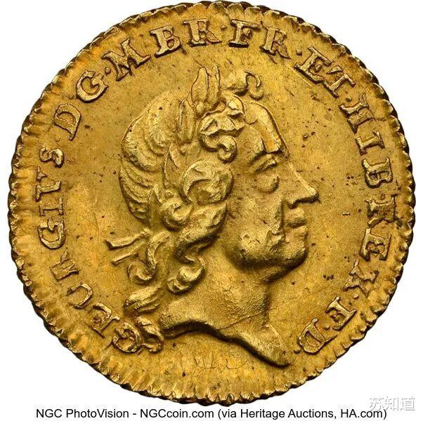 乔治一生时刻,牛顿针对小额货币短少的问题,在1718年推出了1/4几尼小额金币。由于运动未便,该币仅铸一年,存世齰舌,成为了稀世珍品。