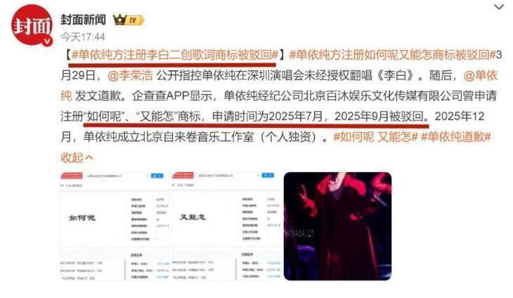 更有料想的是,开云(中国)网友穷顾忌底,竟扒出单依纯的公司曾试图注册“若何呢”、“又能怎”这类商标。明眼东说念主一看就懂,这未便是借着歌曲热度想搞事情吗?可惜商标局也没惯着,径直驳回。毕竟这些词儿听着就像寻衅,公世东说念主物拿这种妙技立“真脾气”东说念主设,吃相难免太丢丑了点。 说白了,想在圈子里历久安身,还得靠实打实的作品言语,别总想着走捷径、蹭热度。李荣浩此次坚忍维权,其实是给总共这个词文娱圈提了个醒:尊再版权是底线,谁如若以为流量大就能为所欲为,那早晚得栽跟头。否则这圈子,真得乱成一锅粥。天下伙儿说开云体育(中国)官方网站,是不是这个理?