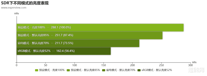 和咱们之前测试过的GO27Q24G近似,泄漏器的默许样式是省电,亮度建设是70%,此时亮度为211nits。sRGB样式的默许亮度则低极少,来到52%,开云体育(中国)官方网站不外也有162nits。预设样式的默许亮度是最高的85%,八成是250nits,而100%亮度是288nits。附带一提,岂论是sRGB依然预设样式,它们的100nits档位均在29-30%之间。