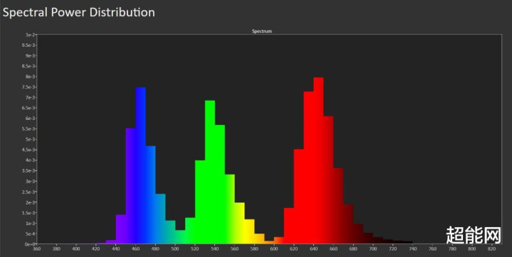 QD-OLED的颜色纯度一向很高,你能从光谱这里看到三原色齐是相互分离的。同期,它的蓝光波峰在460nm处,散失了无益蓝光段。这亦然为什么MO32U24得回TÜV莱茵硬件级低蓝光认证的原因。
