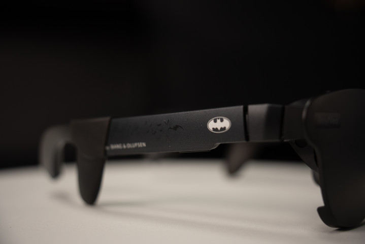 天然,既然是闭幕版笃定不仅仅送些配件这样简便,在右侧的镜腿上,大略看到专属的蝙蝠标志,以及蝙蝠由远而近飞来的蚀刻遮挡,在施助的眼镜盒上也印了蝙蝠标,举座来看定轨制照旧不低的。