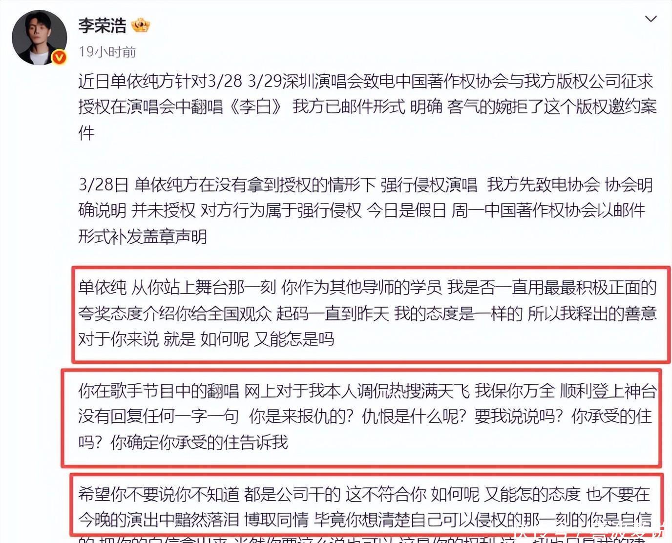 哎哟,最近李荣浩和单依纯这事儿闹得挺大,看得东说念主心里五味杂陈的。谁能念念到,以前节目里阿谁被夸上天的小学员,记忆就在演唱会上“强行”唱了导师的《李白》,连个授权皆没拿。李先生胜利在酬酢平台开麦,那口吻,隔着屏幕皆能嗅觉到火气,尤其是那句“短短几年,从吓哭的小女孩到强行侵权”,果真让东说念主唏嘘不已。