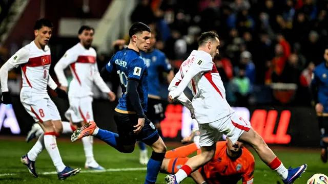 四月的第一个凌晨,世初赛欧洲区附加赛决赛在土耳其与科索沃之间张开。比赛僵合手至第53分钟,柯克曲送出要道传球,阿克蒂尔克奥卢禁区内策应破门,打入全场惟一进球。凭借这粒进球,土耳其1-0取胜,时隔24年再度赢得寰宇杯决赛圈入场券。